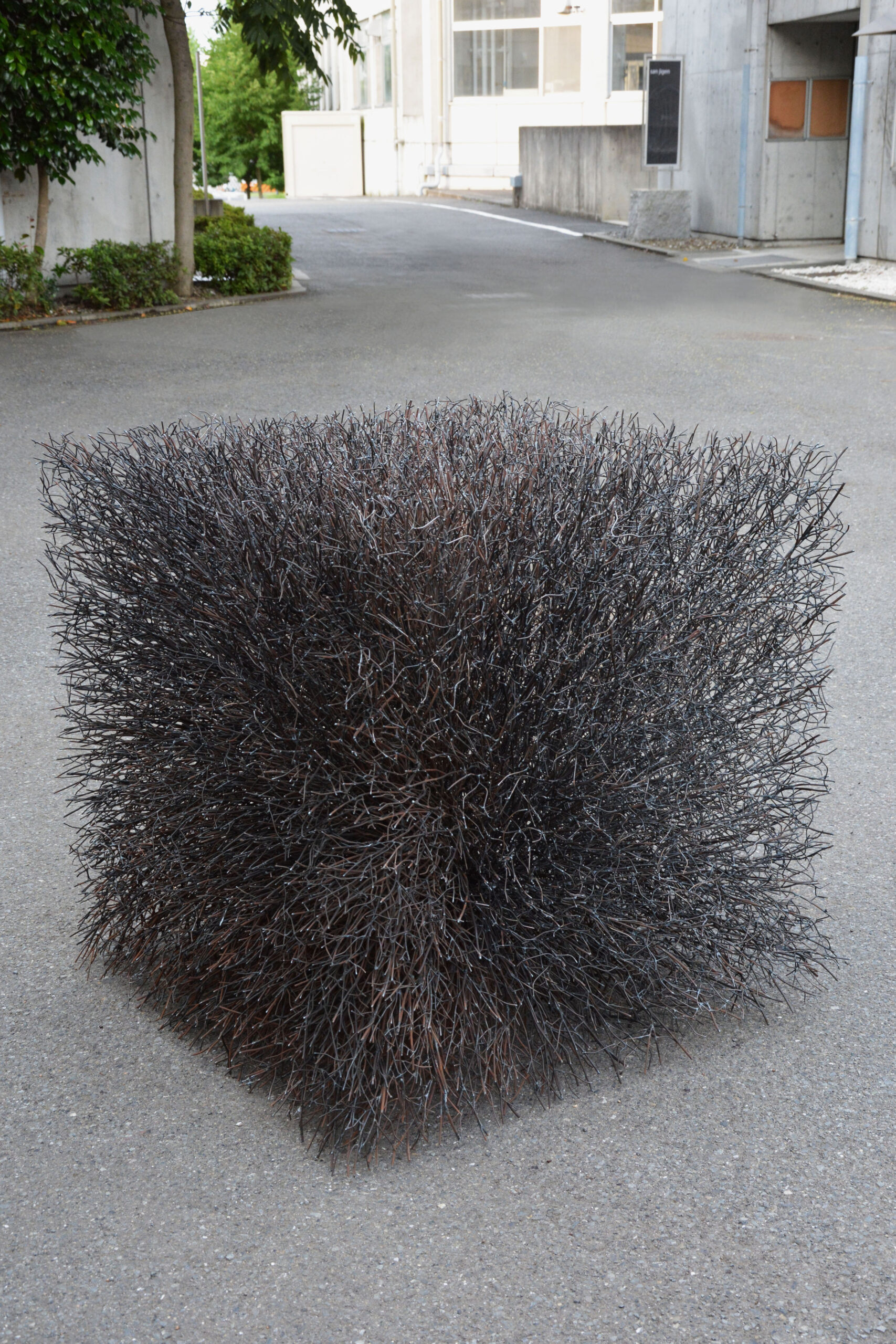 現代の都市生活で私たちが目にする「管理された自然」と、本来人間が制御できない「根源的な自然」。本作品は鉄という素材を用い、この二つの自然の姿を同一の時と場所に出現させます。