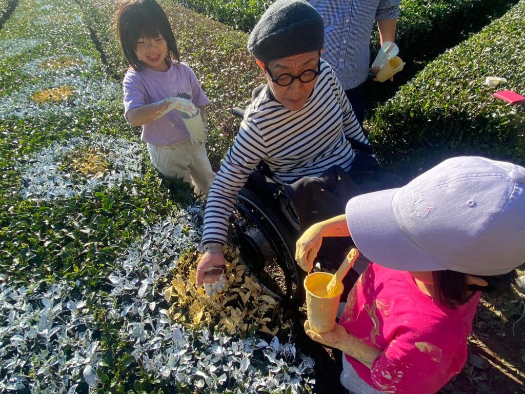 抜里の収穫をやめた茶畑をキャンバスに和信化学工業オリジナルペンキを使って